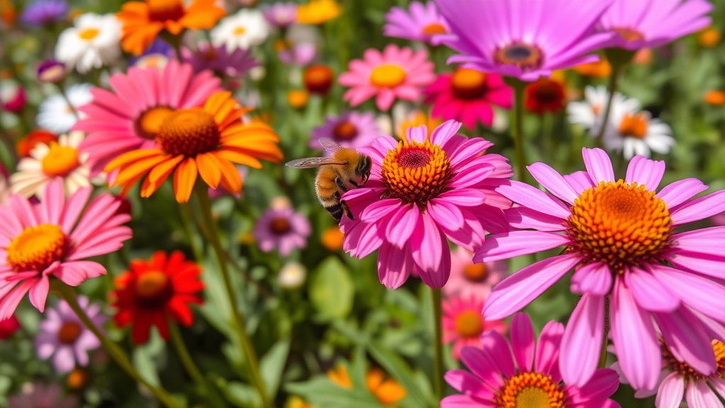 Creëer een bijenparadijs met diverse bloemen en natuurlijke elementen